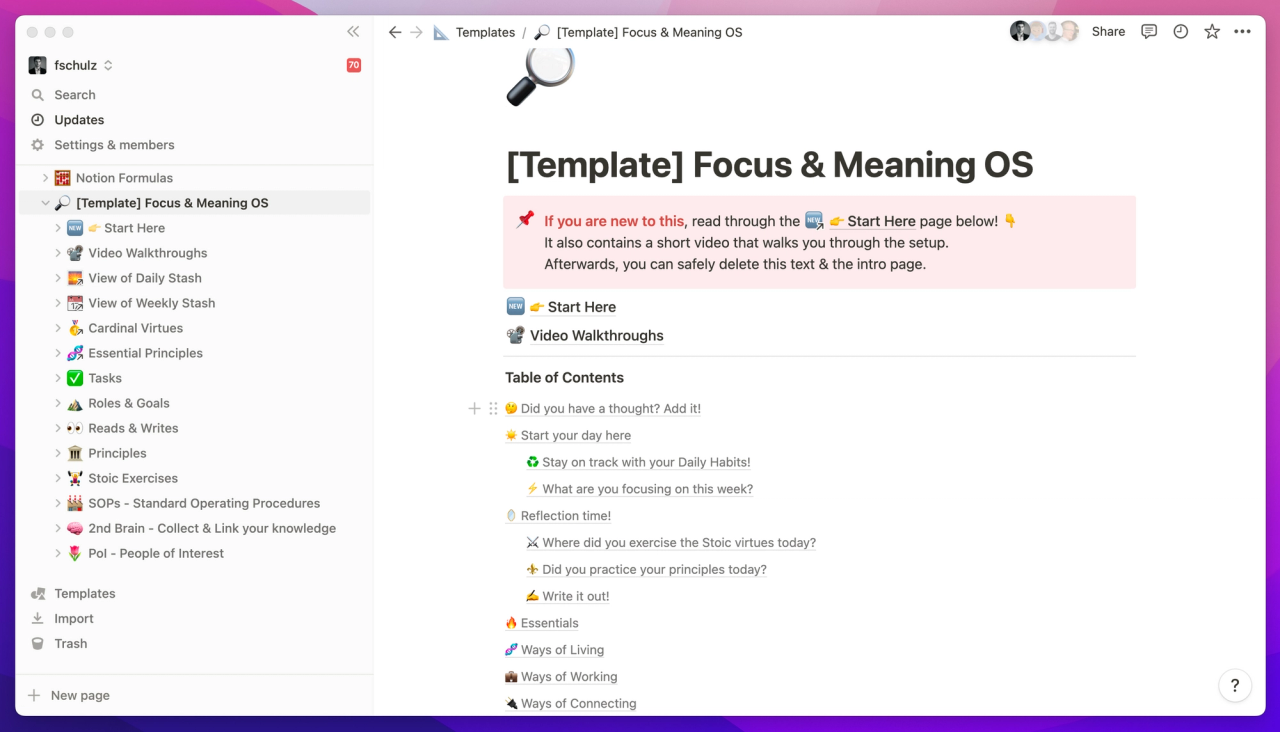 A Second Brain databases. One for all your contacts. One for all the learnings of your life (SOPs). And, of course, as promised, Stoic Exercises.